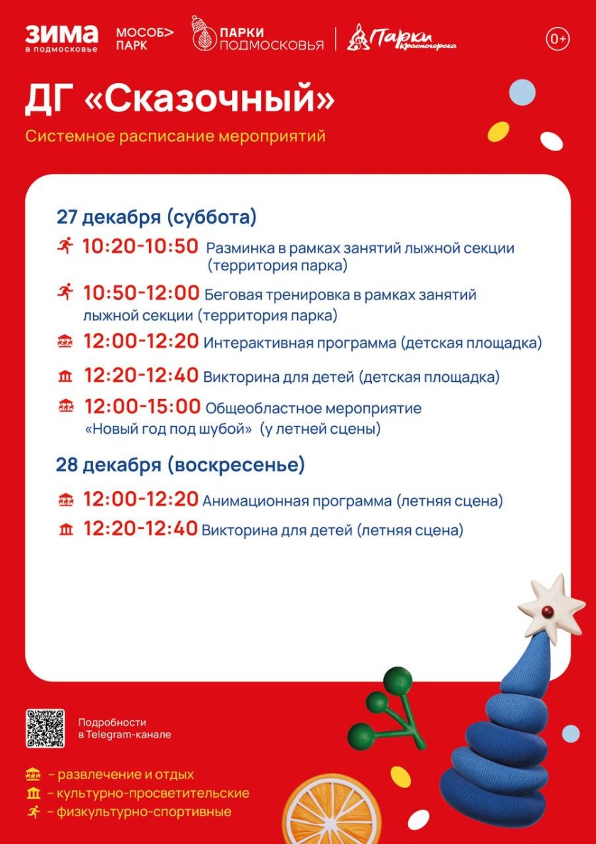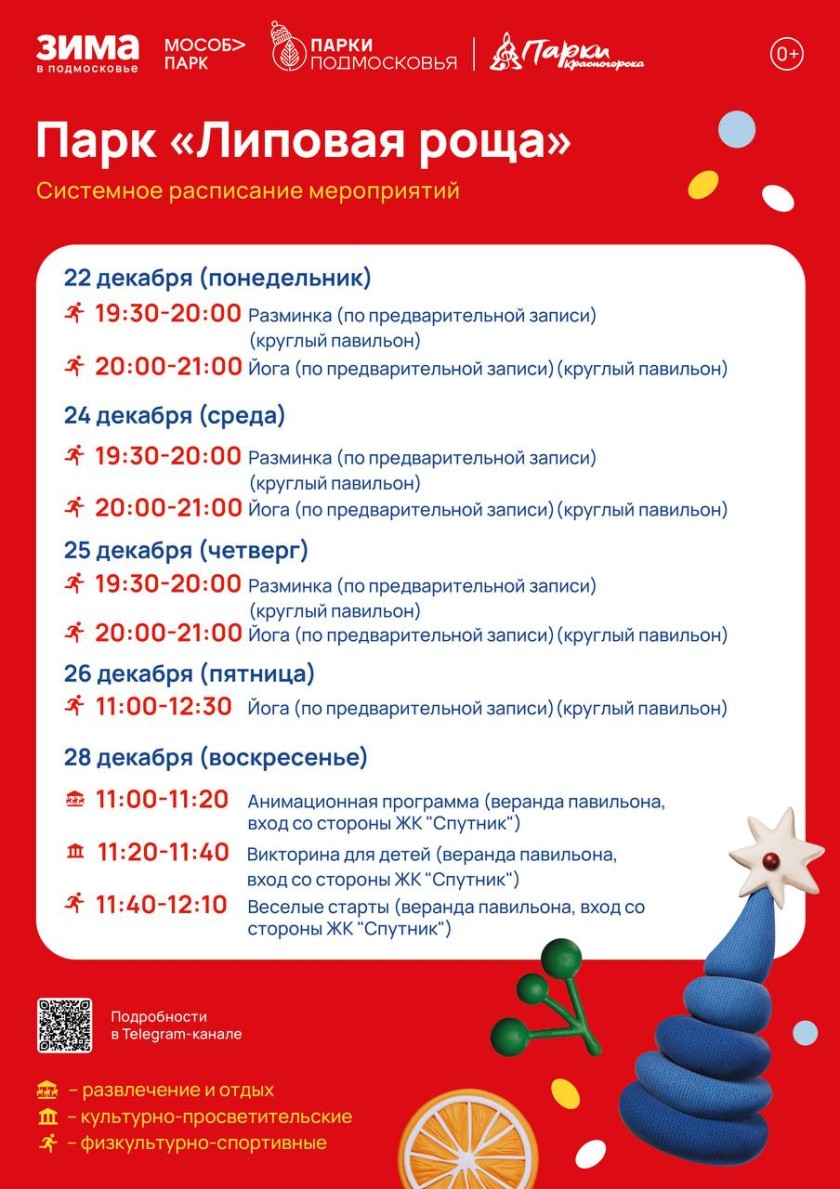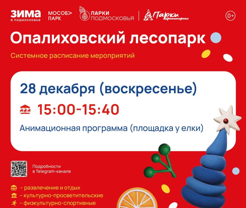 Афиша мероприятий на парковых территориях с 22 по 28 декабря